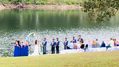 The ceremony took place right on the lakeshore with the sparkling blue green water as the backdrop.